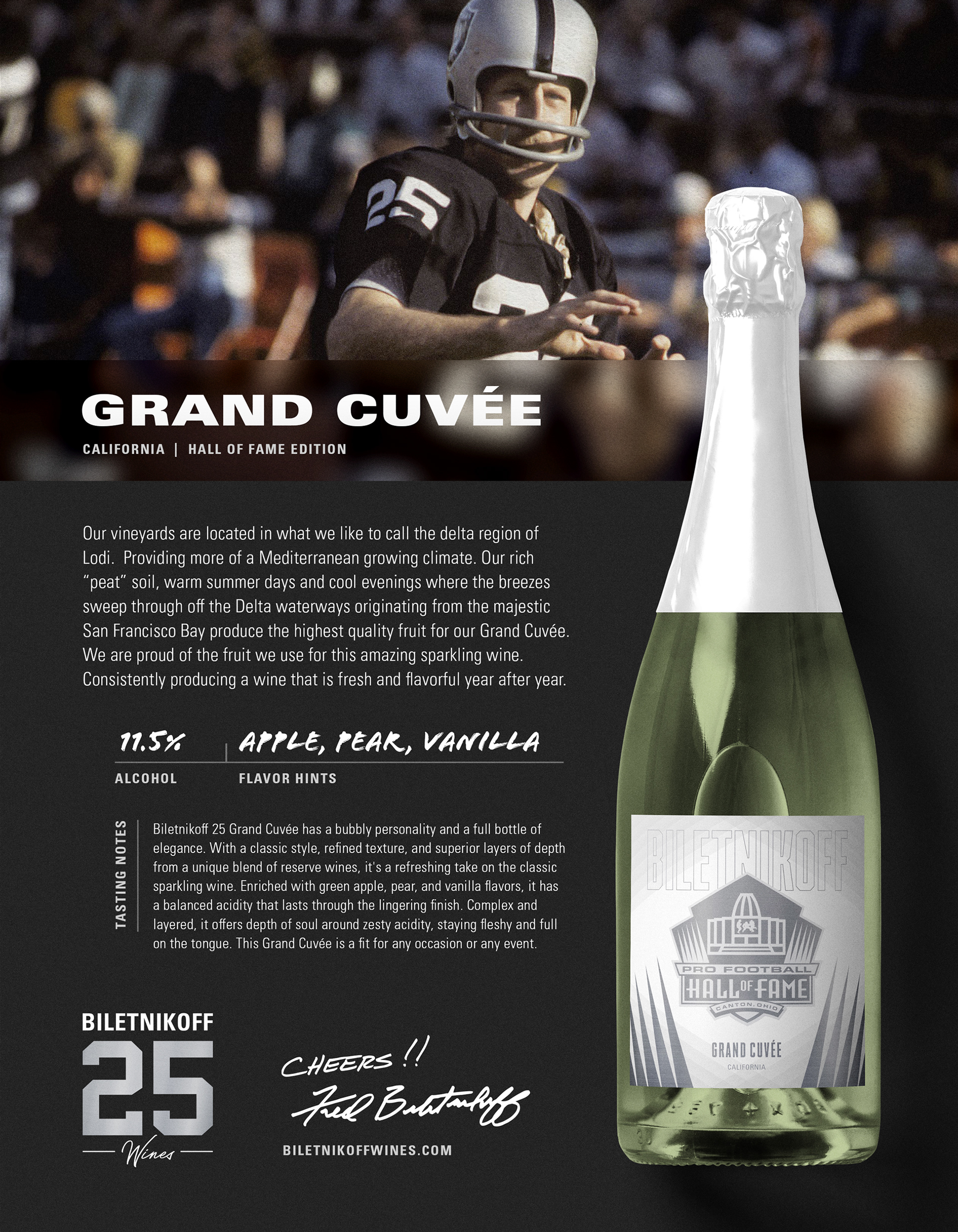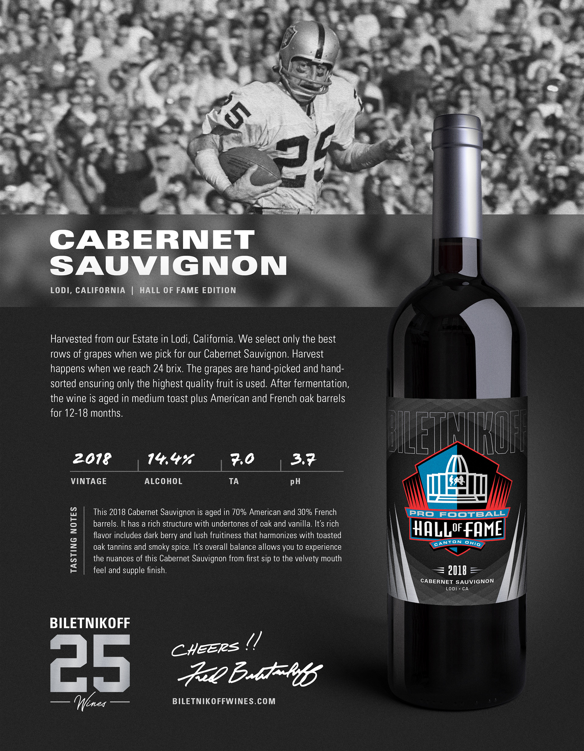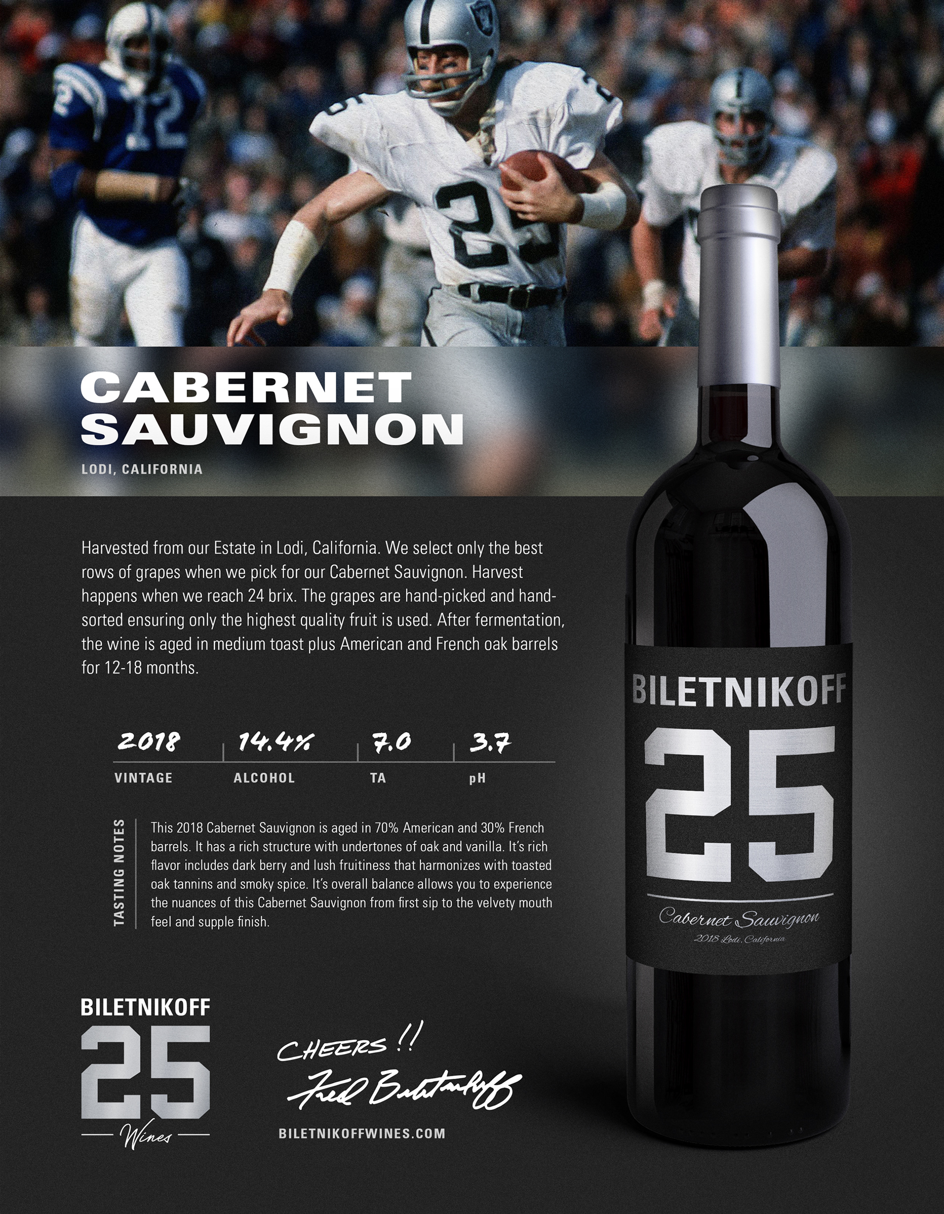 Collaborating with Biletnikoff 25 Wines, a brand closely tied to the foundation and a recurring title sponsor of the tournament, I developed wine labels, tech sheets, and promotional materials across their portfolio.