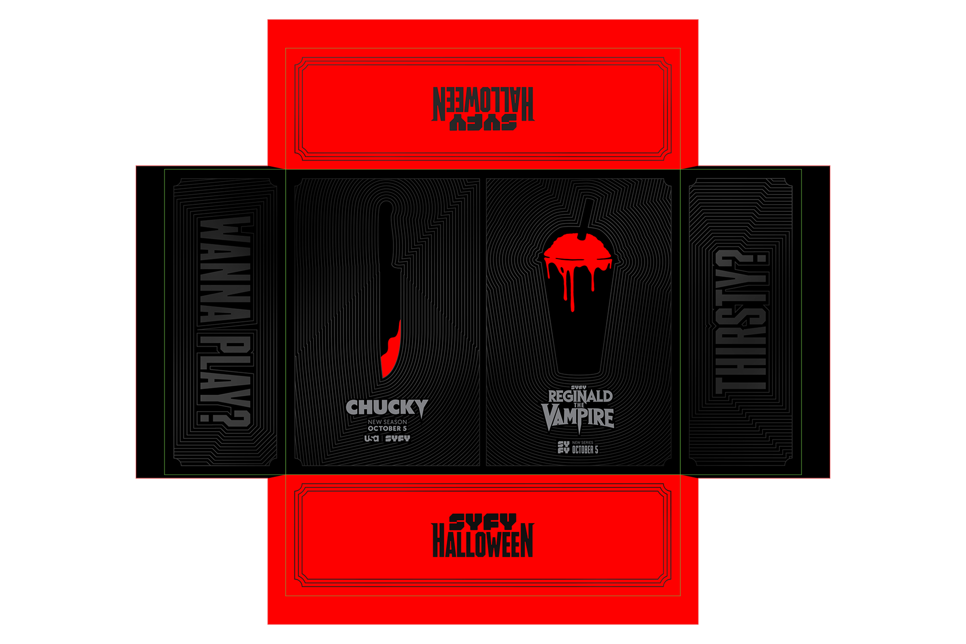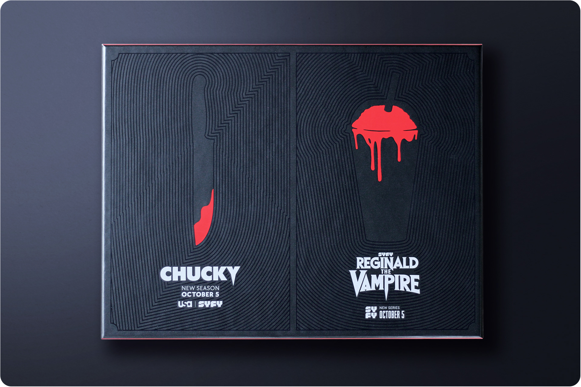 Working with the Syfy/USA Team, I created print elements for the Syfy Halloween dual premiere press kit for Chucky S2 and Reginald the Vampire.